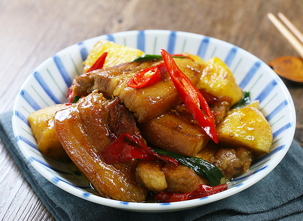 地瓜富含膳食纖維容易有飽足感,且具有熱量低,不易造成血糖快速提升等優點。與五花肉塊一起燜煮,是道輕鬆上手的下飯料理。