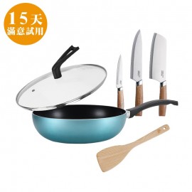 更多組合請點>>> 金鑽不沾鍋系列 食品級細膩不沾內層,少油不沾更健康! 鍋身輕巧如一杯手搖紅茶,盛裝食材也可輕鬆拿。 經SGS檢驗,不含PFOA、不含重金屬,煮食更放心。 組合內附木鏟,不沾鍋的好幫手!