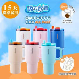 可吸珍珠、仙草、布丁…有料飲品都OK。 陶瓷內層,盛裝咖啡、茶飲…忠於飲品原味。 約860ml大容量設計,適合辦公、運動、旅遊…。 9cm超大廣口,可輕鬆放入冰塊,盛裝清洗都便利。 贈美國TRITAN珍珠吸管+吸管刷。 隱藏式提把+可拆式杯底防滑套,防滑耐磨更穩固。