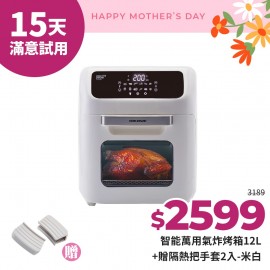 瀝油不沾烤盤超萬用 烤全魚、易沾食材都不沾 12L可烤4斤全雞,空間充分運用 多層烘烤更方便聚餐、派對都能快速上菜 TURBO+氣旋對流科技,五機合一料理多變化 智慧觸控面板,微電腦12種模式全自動烹調 全配件輕鬆做,滿足中西各式料理 少油氣炸 告別油煙油膩,減油80%更健康 五大安全裝置,確保美味烹調又安全