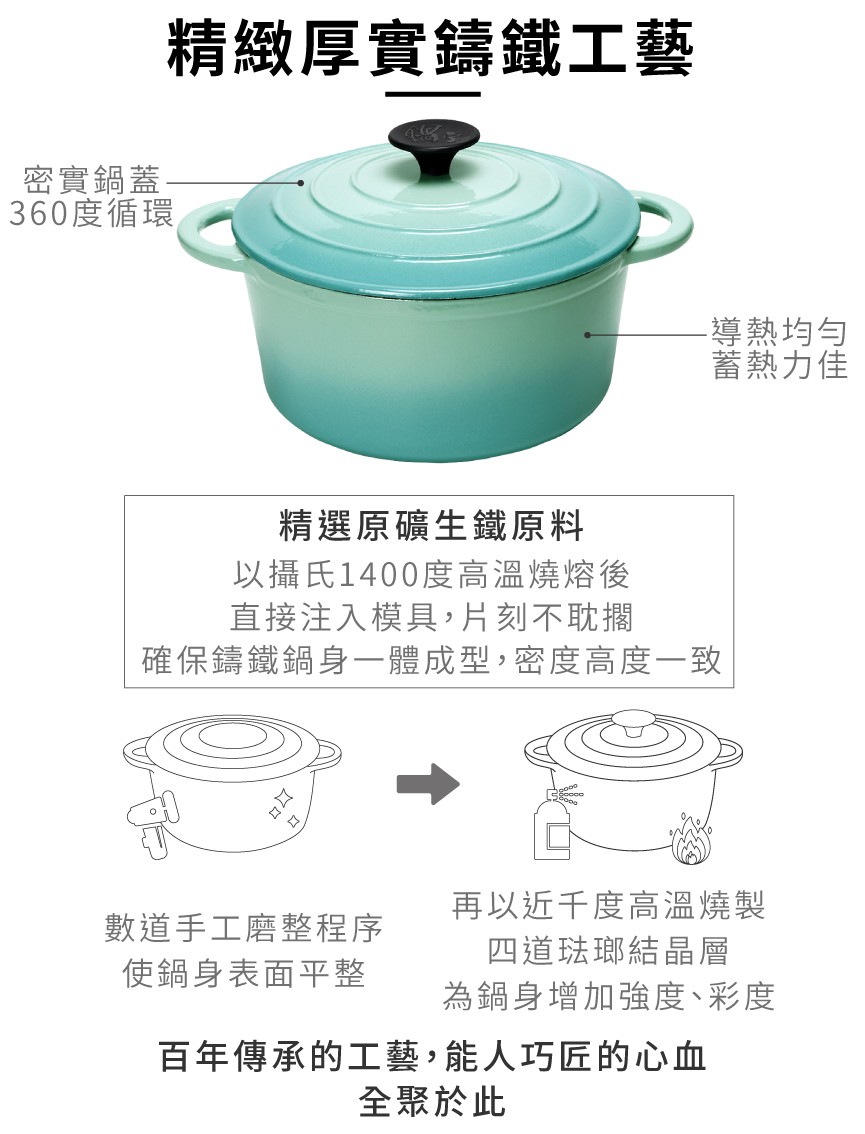 材質:鍋身、鍋蓋/鑄鐵+琺瑯