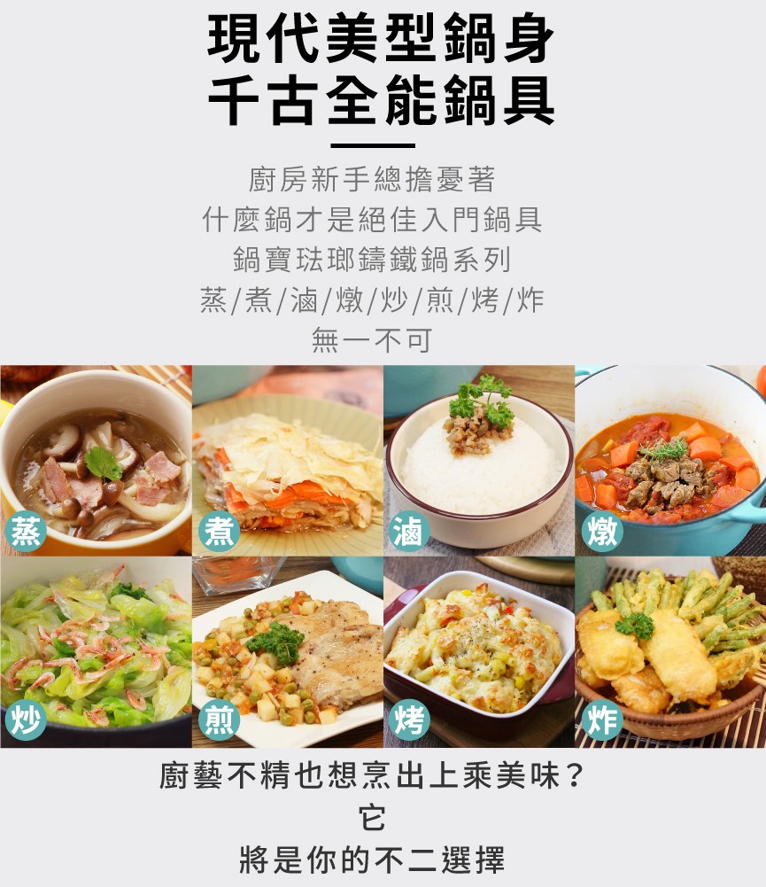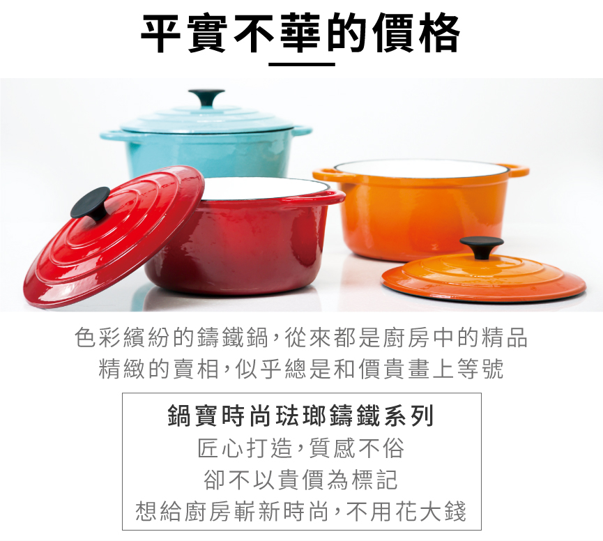 琺瑯鑄鐵鍋亮麗鍋身,餐桌上最美麗的身影。