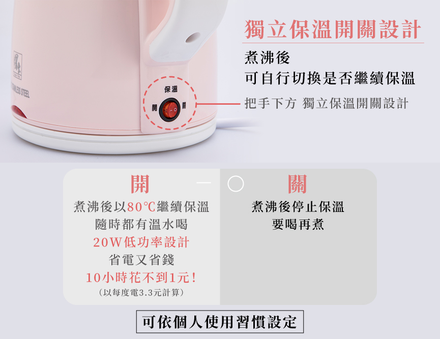 具獨立保溫開關,想要隨時喝溫熱開水,不必另外煮。