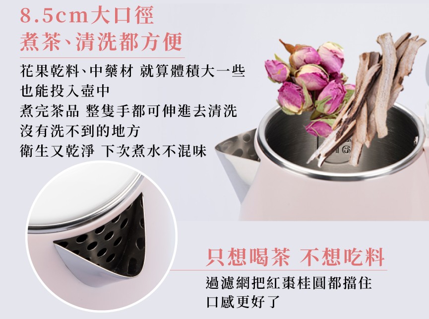 8.5cm大口徑,加入茶葉、清洗內膽都方便。