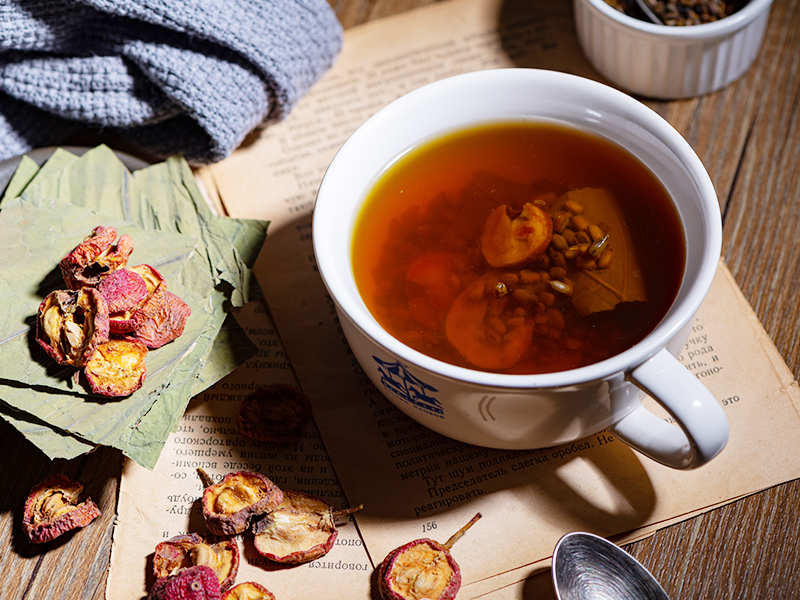 準備一個湯鍋,倒入1000ml水煮滾,山楂、荷葉、生決明子放至鍋中繼續煮滾,接著開小火煮20分鐘