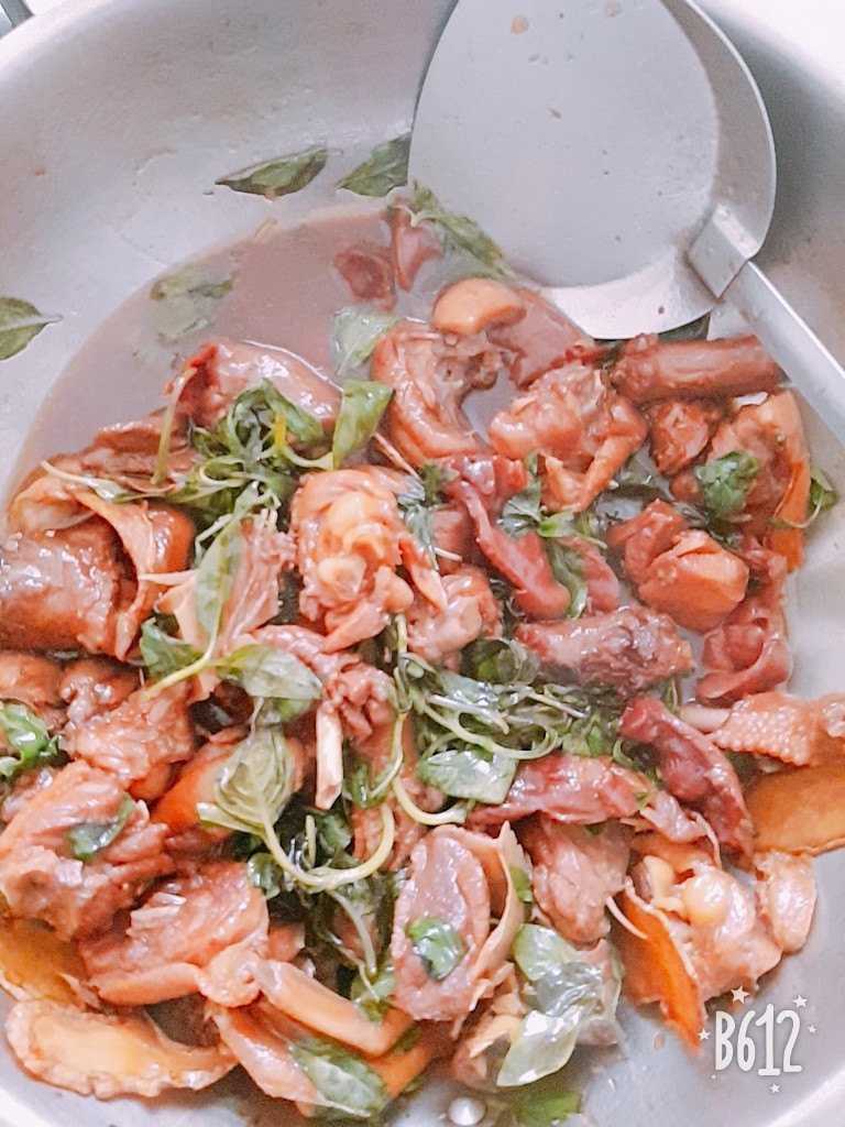 起油鍋,爆香紅蔥頭和香菇丁後,加入芋頭絲一同拌炒,並加入調味料炒勻。