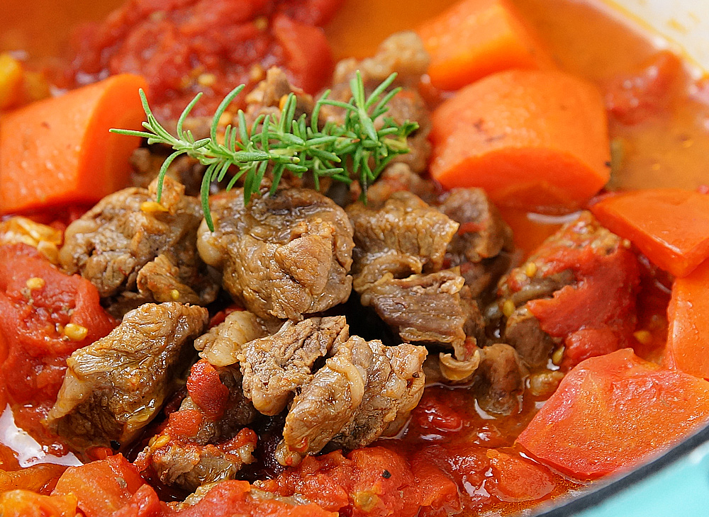 燉好的番茄牛肉,除了直接配飯、沾麵包之外,也可以拌入煮熟的通心麵上桌,甚至是加入少許乳酪絲,放入烤箱烤融,做成焗烤番茄牛肉通心麵,都很美味。