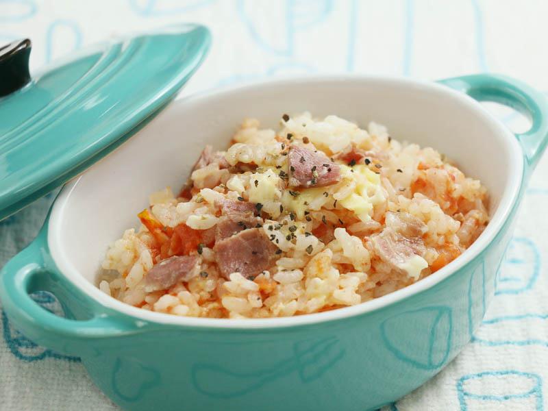 曾經有一道電鍋番茄飯紅極一時,利用電鍋,把白米加入番茄和調味料一起煮。此料理為火紅的番茄飯「進階版」,加入更多食材,讓滋味更豐富,吃起來有奶香燉飯的感覺,同樣以電鍋來製作,是一秒就上手的簡單料理,零廚藝也沒問題,家裡沒有廚房,只要有電鍋就可以完成哦!