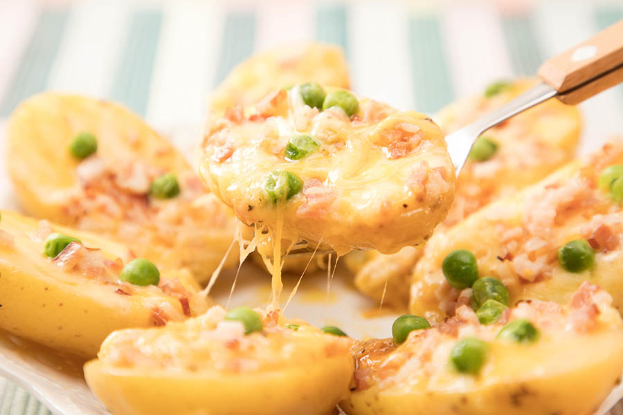將馬鈴薯洗淨、對切成船型,切面朝上,排入內鍋。