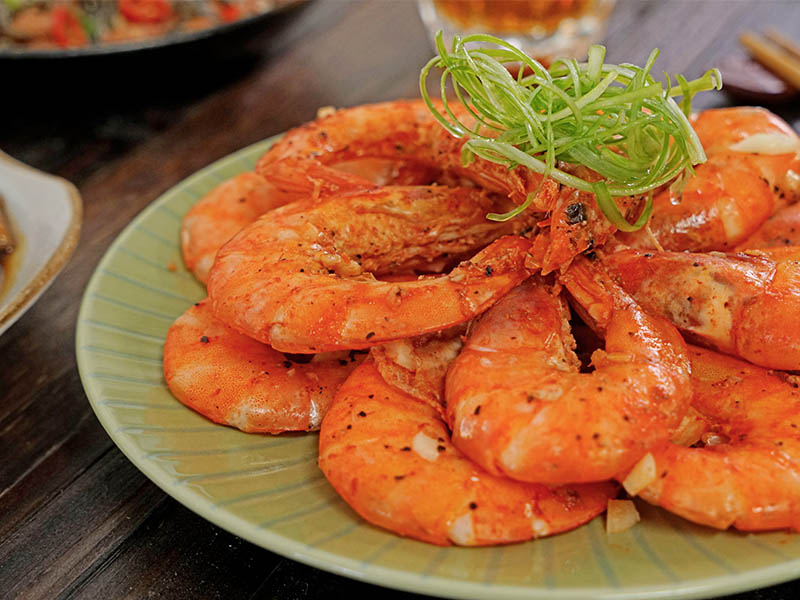 蝦子洗淨剪鬚,蒜頭去膜切碎。