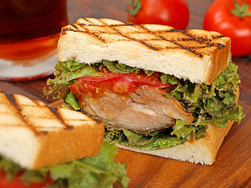 靜置約3分鐘,再將三明治分切即可。