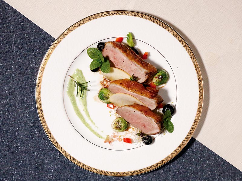 鴨胸劃刀有助於鴨皮表層的油脂流出,讓鴨皮更酥脆。