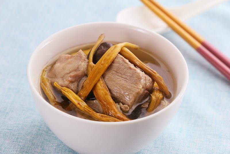 煮湯的金針,一般是使用乾燥過的金針,購買時要挑選外型完整、色澤自然不過度鮮豔的金針。食用前,可先浸泡冷水約20分鐘左右,先把金針泡軟,並放滾水汆燙,去除多餘的添加物,吃起來更安心。