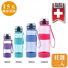 瑞士進口TR55材質 歐盟級16項安全認證+SGS檢測合格,高品質最放心 耐酸鹼,裝檸檬汁/醋飲都OK! 耐高溫130℃,非一般塑料材質! 400ml贈吸管上蓋,學齡前幼童亦適用。 各瓶型皆附贈長背帶/手提帶,可自由替換 ONE TOUCH安全鎖+彈跳蓋,單手可開 瓶身輕巧攜帶方便零負擔 瓶身、杯底防滑設計,好握不滑手、防震耐摔