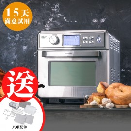 瀝油不沾烤盤超萬用,烤全魚免翻面、超不沾。 超大容量+多層烘烤,4斤全雞、烤全鴨都OK。 微電腦16種烹飪模式,簡單易操作。 上下電熱管+TURBO氣旋,烘烤快速均勻。 烤箱+氣炸鍋+燉鍋+果乾機+燒烤爐+麵包機,六機合一。 多樣配件料理真輕鬆,滿足中西各種烹調方式。 少油氣炸、告別油煙油膩、減油80%更健康。 可視雙層玻璃門,隨時掌控食物熟度與美味。 5大安全裝置,使用安全又安心。