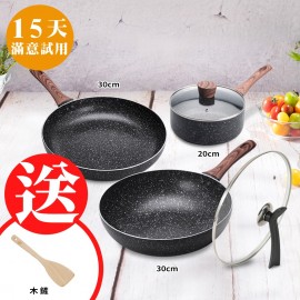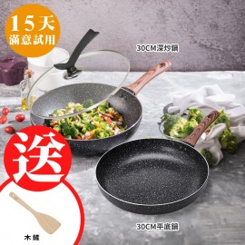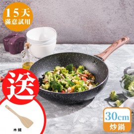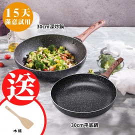 更多組合請點>>> 原礦大理石紋不沾鍋系列 導磁複合金鍋底傳熱快速、導熱均勻 食品級不沾材質,好烹調、好清洗 30cm大寬面+8cm深型鍋身,翻炒更輕鬆 食物快熟不沾鍋,煎煮炒燉炸都適合 人體工學防燙把手,好握不費力 用油少、低油煙,烹調更健康