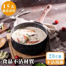食品級不沾材質+時尚大理石紋,輕巧好清洗 導磁複合金鍋底,導熱快,適用各種爐具 20cm口徑+8cm深型鍋身,中西料理一鍋包辦 減油量,少油煙,烹調最健康 人體工學防燙把手+鍋蓋頭,好握不費力