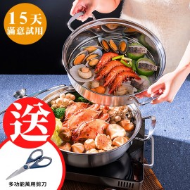 7L大容量年節團圓圍爐親友聚餐必備 深鍋型+蒸籠設計,各式料理一鍋搞定 蒸籠層底部孔洞設計,上下蒸氣循環加熱 304不鏽鋼材質,耐酸鹼防腐蝕 不挑爐具,電磁爐/瓦斯爐/黑晶爐皆適用 鍋內360度循環加熱鎖住食材原滋味 透明玻璃鍋蓋,烹煮狀況一目了然