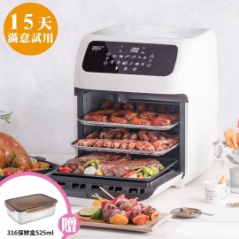 瀝油不沾烤盤超萬用 烤全魚、易沾食材都不沾 12L可烤4斤全雞,空間充分運用 多層烘烤更方便聚餐、派對都能快速上菜 TURBO+氣旋對流科技,五機合一料理多變化 智慧觸控面板,微電腦12種模式全自動烹調 全配件輕鬆做,滿足中西各式料理 少油氣炸 告別油煙油膩,減油80%更健康 五大安全裝置,確保美味烹調又安全