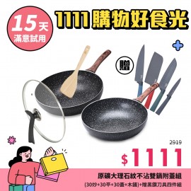 更多組合請點>>> 原礦大理石紋不沾鍋系列 導磁複合金鍋底傳熱快速、導熱均勻 食品級不沾材質,好烹調、好清洗 30cm大寬面,翻炒更輕鬆 食物快熟不沾鍋,煎煮炒燉炸都適合 人體工學防燙把手,好握不費力 用油少、低油煙,烹調更健康