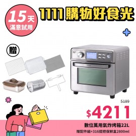 瀝油不沾烤盤超萬用,烤全魚免翻面、超不沾。 超大容量+多層烘烤,4斤全雞、烤全鴨都OK。 微電腦16種烹飪模式,簡單易操作。 上下電熱管+TURBO氣旋,烘烤快速均勻。 烤箱+氣炸鍋+燉鍋+果乾機+燒烤爐+麵包機,六機合一。 多樣配件料理真輕鬆,滿足中西各種烹調方式。 少油氣炸、告別油煙油膩、減油80%更健康。 可視雙層玻璃門,隨時掌控食物熟度與美味。 5大安全裝置,使用安全又安心。