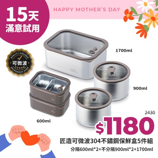 更多組合請點>>> 可微波分隔保鮮盒專區 可微波304不鏽鋼,抗腐蝕、耐酸鹼,一體成型不易卡垢 高盒蓋+分隔設計,食物不串味,美味多更多 適用微波爐、電磁爐、電鍋、烤箱、氣炸鍋 加寬盒身上緣,圓滑細緻,端取更方便 四邊壓扣堅固耐用,密封保鮮不易外漏 可拆卸密封矽膠圈,方便拆卸好清洗 冷凍、冷藏OK