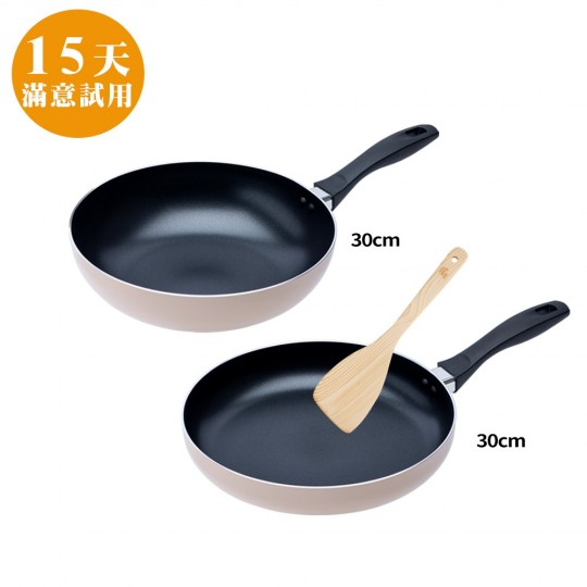 更多組合請點>>> 金鑽不沾鍋系列 炒鍋+平底鍋+木鏟3件組,雙鍋28cm,小家庭最適合的組合! 食品級細膩不沾內層,少油不沾更健康! 鍋身輕巧如一杯手搖紅茶,盛裝食材也可輕鬆拿! 經SGS檢驗,不含PFOA、不含重金屬,煮食更放心! 金鑽不沾鍋愛用者的回購首選!