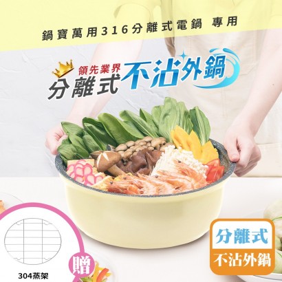 品名:【鍋寶】萬用316分離式電鍋專用不沾外鍋(含蒸架)-萊姆黃
