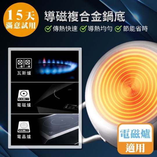 導磁複合金鍋底傳熱快速、導熱均勻,適用電磁爐