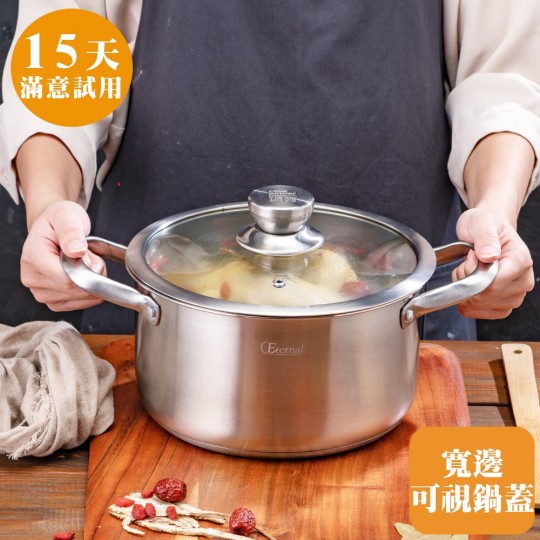寬型鋼材包邊玻璃鍋蓋,快速燜煮食材,縮短料理時間。