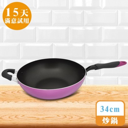 34cm大鍋徑,適合翻炒中式料理 食品級樹脂不沾處理 高級時尚彩色鍋身,質感出眾 省時、省力、省油、省燃料