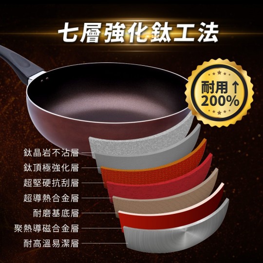 TITANIUM鈦晶七層強化不沾,2倍耐用度