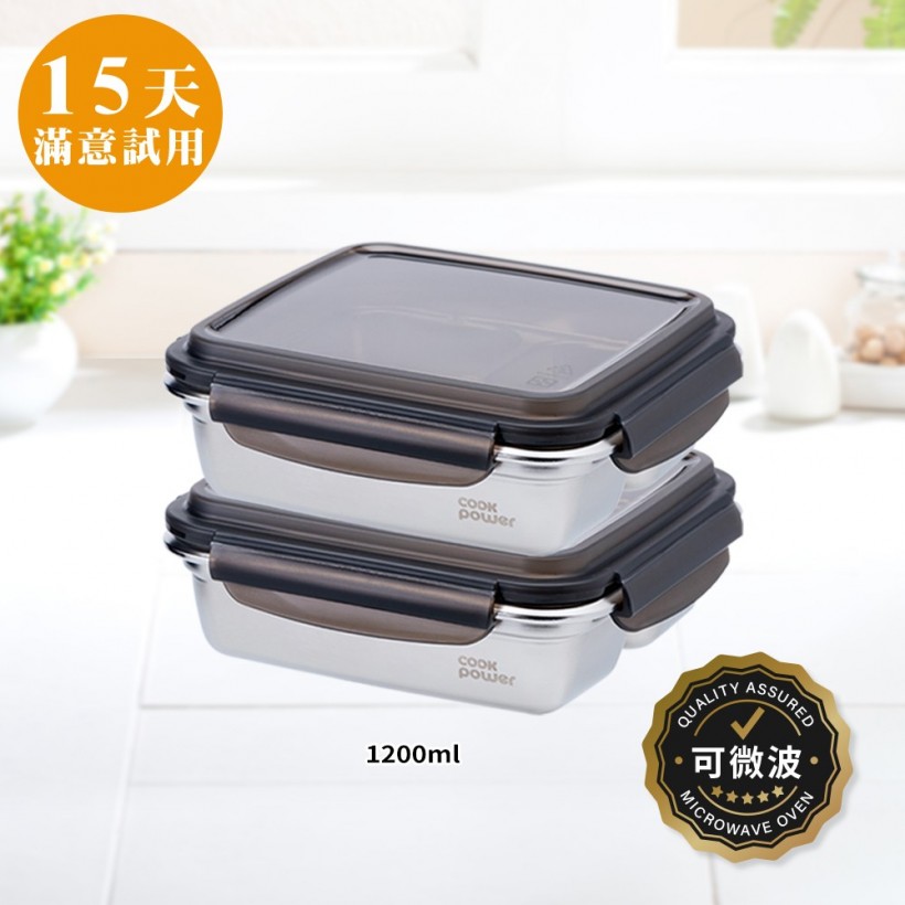 [鍋寶]可微波不鏽鋼分隔保鮮盒2入組(870ml+1200ml)