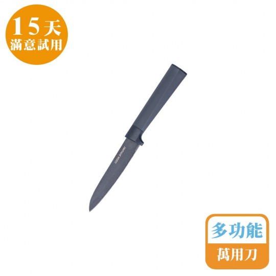 不鏽鋼+熱處理不沾材質,鋼體耐磨硬度高 不沾黏氣孔設計,立體圓心凹槽俐落好切 人體工學握把舒適,施力點佳、好切順手 切刀:無骨肉類、魚類、蔬果 主廚刀:蔬果切片/切塊/切絲/切丁 萬用刀:三合一設計,削皮、切水果、開瓶器