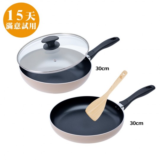 更多組合請點>>> 原礦大理石紋不沾鍋系列 導磁複合金鍋底傳熱快速、導熱均勻 食品級不沾材質,好烹調、好清洗 30cm大寬面+8cm深型鍋身,翻炒更輕鬆 食物快熟不沾鍋,煎煮炒燉炸都適合 人體工學防燙把手,好握不費力 用油少、低油煙,烹調更健康